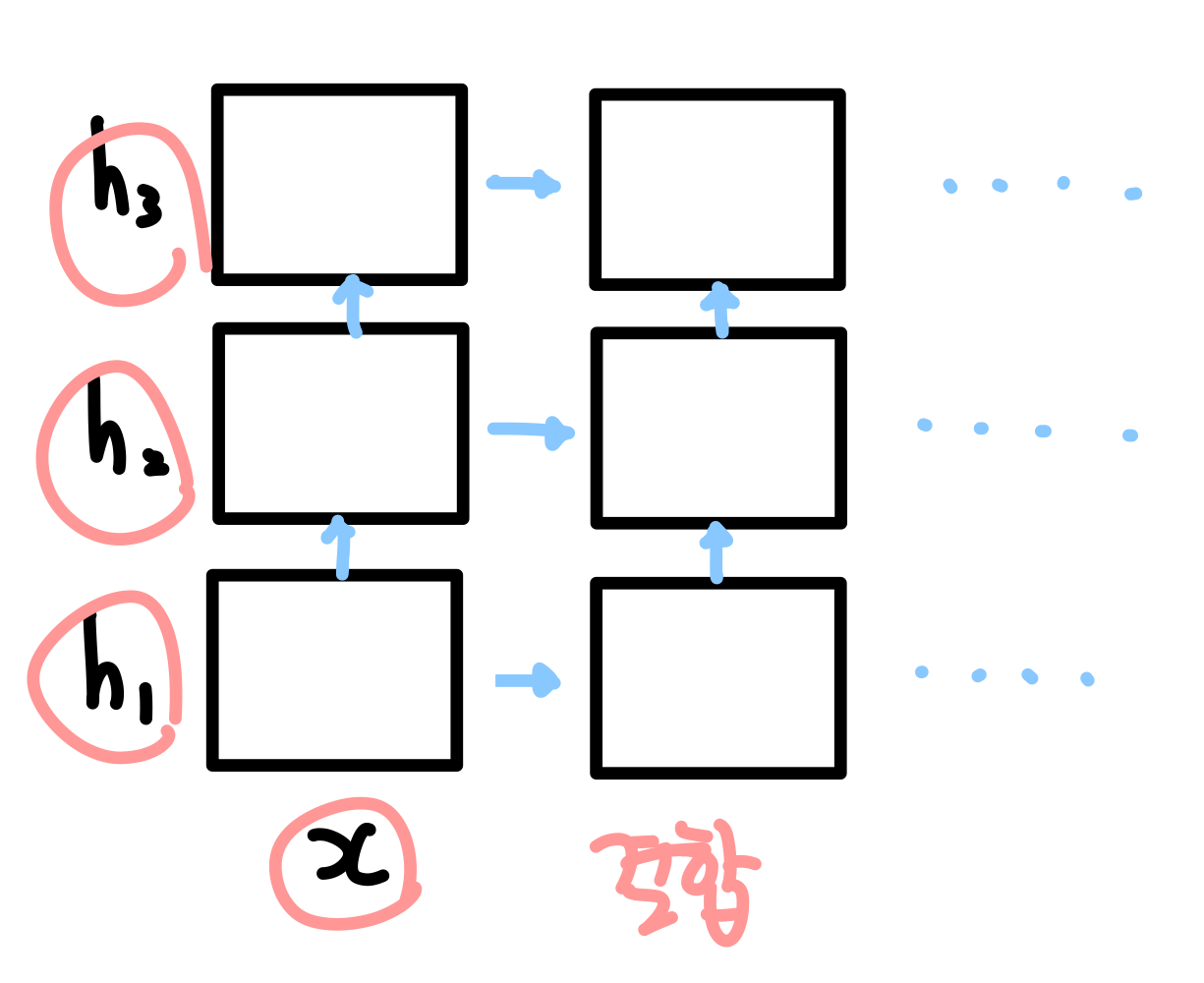 - 아래 층에 있는 represenation vector(ex. $h_1$)들은 구문분석(syntax)에 해당하는 Feature들을 포함한다.