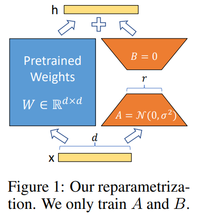 위의 그림에서 W는 학습되지 않고 A, B만 학습을 시킨다는게 LoRA의 핵심이다.